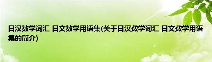 日汉数学词汇日文数学用语集(关于日汉数学词汇日文数学用语集的简介)