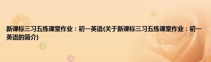 新课标三习五练课堂作业:初一英语(关于新课标三习五练课堂作业:初一英语的简介)