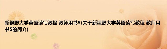 大家好,新视野大学英语读写教程 教师用书5,关于新视野大学英语读写教程 教师用书5的简介很多人还不知道,现在让我们一起来看看吧!