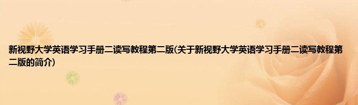 本文关于新视野大学英语学习手册二读写教程第二版的简介就讲解完毕,希望对大家有所帮助。