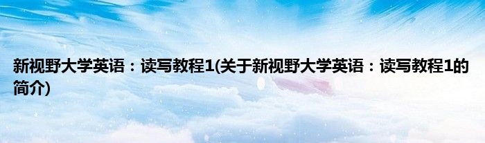 本文关于新视野大学英语:读写教程1的简介就讲解完毕,希望对大家有所帮助。