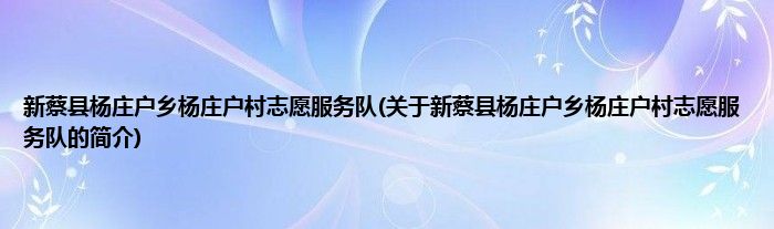 本文关于新蔡县杨庄户乡杨庄户村志愿服务队的简介就讲解完毕,希望对大家有所帮助。