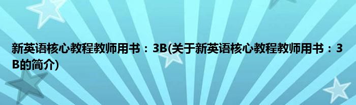 本文关于新英语核心教程教师用书:3B的简介就讲解完毕,希望对大家有所帮助。