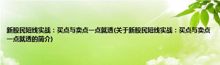 本文关于新股民短线实战:买点与卖点一点就透的简介就讲解完毕,希望对大家有所帮助。