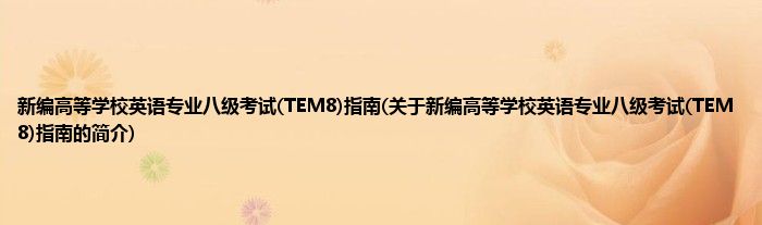 1、 《新编高等学校英语专业八级考试(TEM8)指南》是上海外语教育出版社出版的图书。