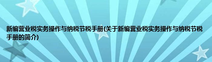 本文关于新编营业税实务操作与纳税节税手册的简介就讲解完毕,希望对大家有所帮助。