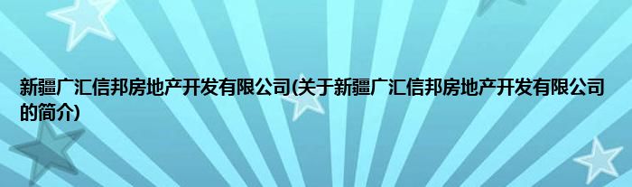本文关于新疆广汇信邦房地产开发有限公司的简介就讲解完毕,希望对大家有所帮助。