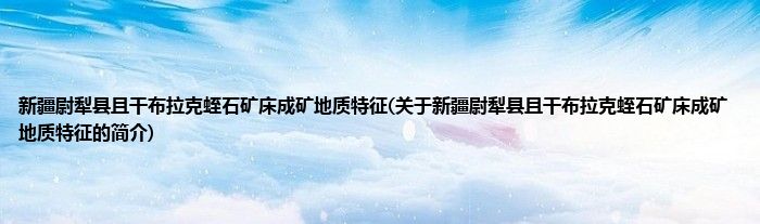 本文关于新疆尉犁县且干布拉克蛭石矿床成矿地质特征的简介就讲解完毕,希望对大家有所帮助。