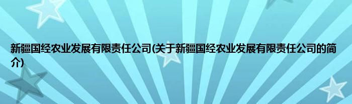 本文关于新疆国经农业发展有限责任公司的简介就讲解完毕,希望对大家有所帮助。