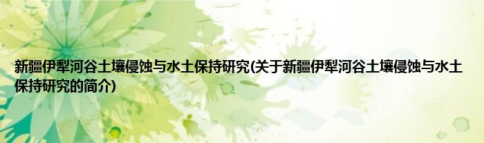 新疆伊犁河谷土壤侵蚀与水土保持研究(关于新疆伊犁河谷土壤侵蚀与水土保持研究的简介)