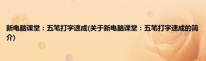 大家好,新电脑课堂:五笔打字速成,关于新电脑课堂:五笔打字速成的简介很多人还不知道,现在让我们一起来看看吧!
