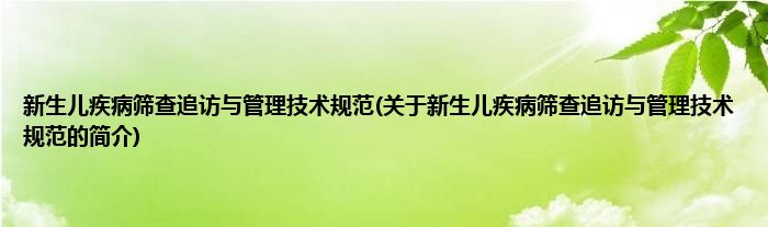 本文关于新生儿疾病筛查追访与管理技术规范的简介就讲解完毕,希望对大家有所帮助。