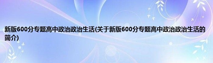 本文关于新版600分专题高中政治政治生活的简介就讲解完毕,希望对大家有所帮助。