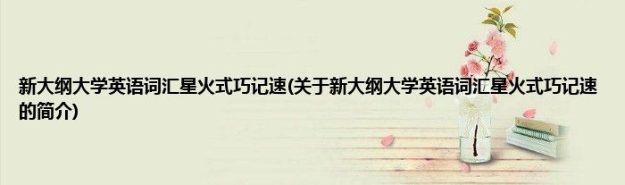 本文关于新大纲大学英语词汇星火式巧记速的简介就讲解完毕,希望对大家有所帮助。