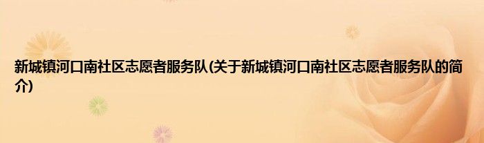 本文关于新城镇河口南社区志愿者服务队的简介就讲解完毕,希望对大家有所帮助。