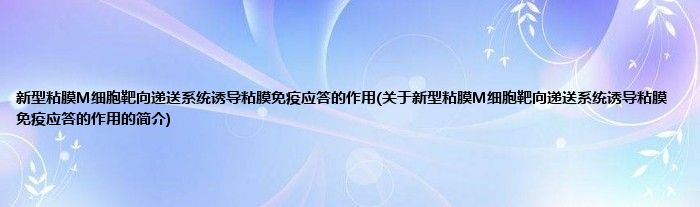 本文关于新型粘膜M细胞靶向递送系统诱导粘膜免疫应答的作用的简介就讲解完毕,希望对大家有所帮助。