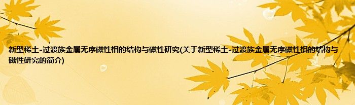 本文关于新型稀土-过渡族金属无序磁性相的结构与磁性研究的简介就讲解完毕,希望对大家有所帮助。