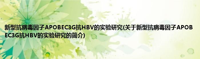 本文关于新型抗病毒因子APOBEC3G抗HBV的实验研究的简介就讲解完毕,希望对大家有所帮助。