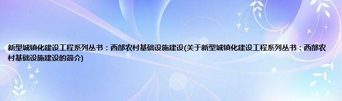 新型城镇化建设工程系列丛书:西部农村基础设施建设(关于新型城镇化建设工程系列丛书:西部农村基础设施建设的简介)
