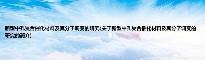 新型中孔复合催化材料及其分子调变的研究(关于新型中孔复合催化材料及其分子调变的研究的简介)