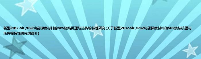 新型ZrB2-SiC/PSZ功能梯度材料的SPS烧结机理与热传输特性研究(关于新型ZrB2-SiC/PSZ功能梯度材料的SPS烧结机理与热传输特性研究的简介)