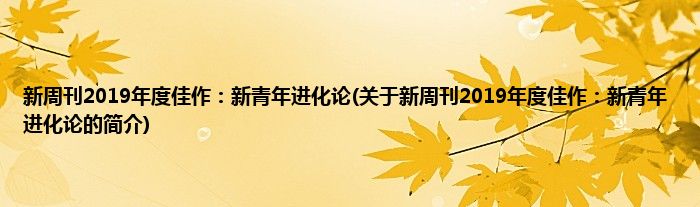 本文关于新周刊2019年度佳作:新青年进化论的简介就讲解完毕,希望对大家有所帮助。