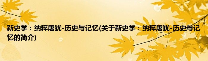本文关于新史学:纳粹屠犹-历史与记忆的简介就讲解完毕,希望对大家有所帮助。