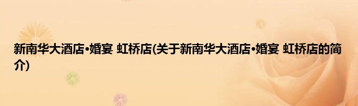 新南华大酒店·婚宴 虹桥店(关于新南华大酒店·婚宴 虹桥店的简介)