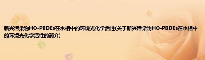 新兴污染物HO-PBDEs在水相中的环境光化学活性(关于新兴污染物HO-PBDEs在水相中的环境光化学活性的简介)