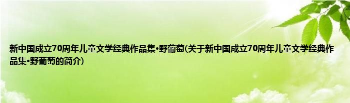 1、 《新中国成立70周年儿童文学经典作品集·野葡萄》是2019年北京少年儿童出版社出版的图书。