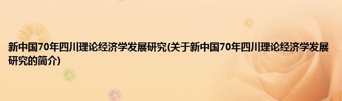 本文关于新中国70年四川理论经济学发展研究的简介就讲解完毕,希望对大家有所帮助。