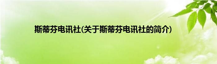 大家好,斯蒂芬电讯社,关于斯蒂芬电讯社的简介很多人还不知道,现在让我们一起来看看吧!