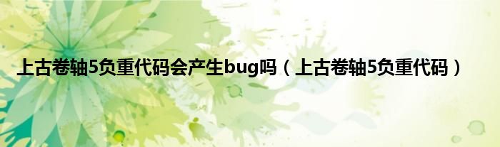 大家好,精选小编来为大家解答以上问题。上古卷轴5负重代码会产生bug吗,上古卷轴5负重代码很多人还不知道,现在让我们一起来看看吧!