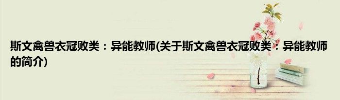 本文关于斯文禽兽衣冠败类:异能教师的简介就讲解完毕,希望对大家有所帮助。