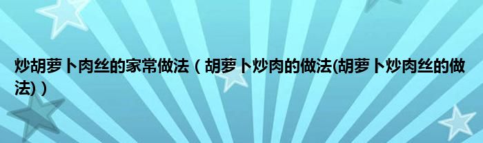 大家好,小科来为大家解答以上问题。炒胡萝卜肉丝的家常做法,胡萝卜炒肉的做法(胡萝卜炒肉丝的做法)很多人还不知道,现在让我们一起来看看吧!