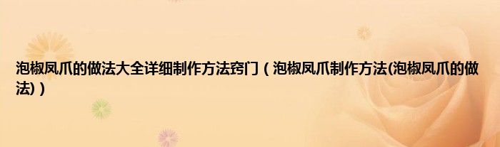 大家好,小科来为大家解答以上问题。泡椒凤爪的做法大全详细制作方法窍门,泡椒凤爪制作方法(泡椒凤爪的做法)很多人还不知道,现在让我们一起来看看吧!