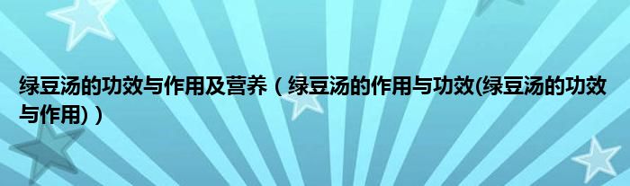 大家好,小科来为大家解答以上问题。绿豆汤的功效与作用及营养,绿豆汤的作用与功效(绿豆汤的功效与作用)很多人还不知道,现在让我们一起来看看吧!