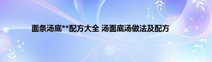 大家好,小科来为大家解答以上问题。面条汤底**配方大全,汤面底汤做法及配方很多人还不知道,现在让我们一起来看看吧!