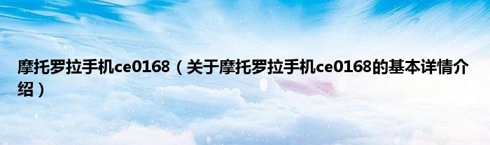 本文关于摩托罗拉手机ce0168的基本详情介绍就讲解完毕,希望对大家有所帮助。