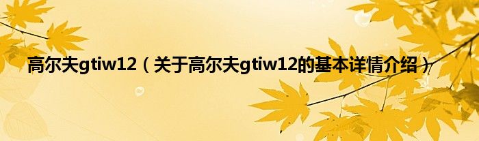 高尔夫gtiw12(关于高尔夫gtiw12的基本详情介绍)