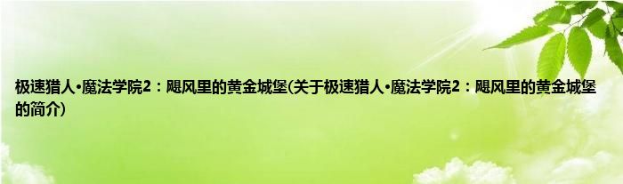 本文关于极速猎人·魔法学院2:飓风里的黄金城堡的简介就讲解完毕,希望对大家有所帮助。