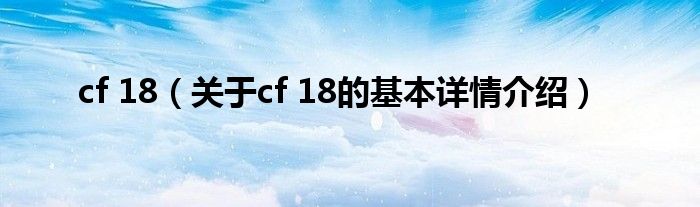 大家好我是小蝌蚪,cf 18,关于cf 18的基本详情介绍很多人还不知道,那么现在让我们一起来看看吧!