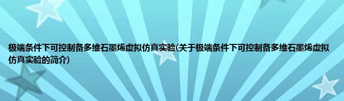 本文关于极端条件下可控制备多维石墨烯虚拟仿真实验的简介就讲解完毕,希望对大家有所帮助。