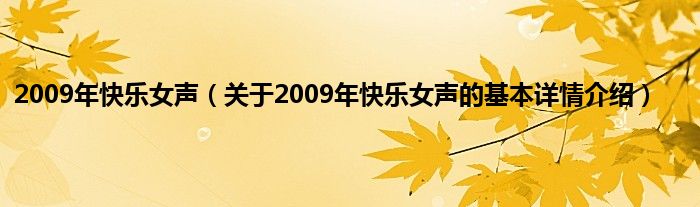 本文关于2009年快乐女声的基本详情介绍就讲解完毕,希望对大家有所帮助。