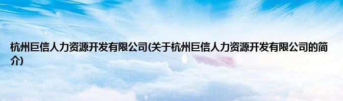 本文关于杭州巨信人力资源开发有限公司的简介就讲解完毕,希望对大家有所帮助。