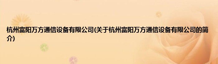 本文关于杭州富阳万方通信设备有限公司的简介就讲解完毕,希望对大家有所帮助。