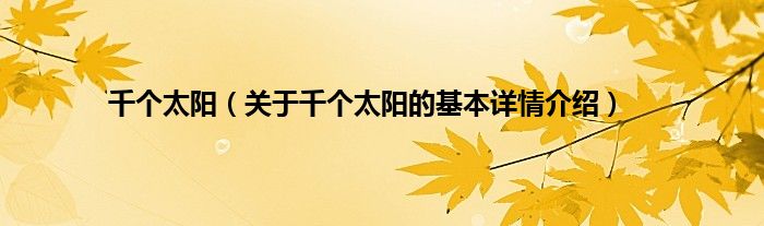 本文关于千个太阳的基本详情介绍就讲解完毕,希望对大家有所帮助。