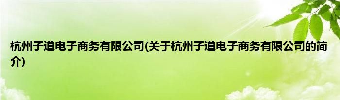 本文关于杭州子道电子商务有限公司的简介就讲解完毕,希望对大家有所帮助。