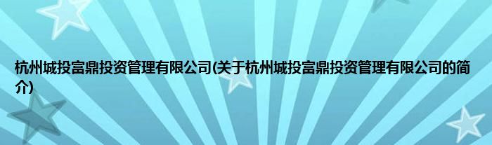 杭州城投富鼎投资管理有限公司(关于杭州城投富鼎投资管理有限公司的简介)