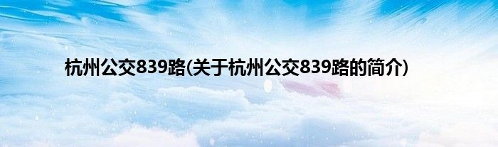 本文关于杭州公交839路的简介就讲解完毕,希望对大家有所帮助。